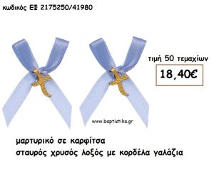 ΜΑΡΤΥΡΙΚΑ ΒΑΠΤΙΣΗΣ ΜΕ ΚΑΡΦΙΤΣΑ ΣΤΑΥΡΟΣ ΧΡΥΣΟΣ ΛΟΞΟΣ ΜΕ ΚΟΡΔΕΛΑ ΧΡΩΜΑ ΓΑΛΑΖΙΑ ΕΦ 2175250/41980
