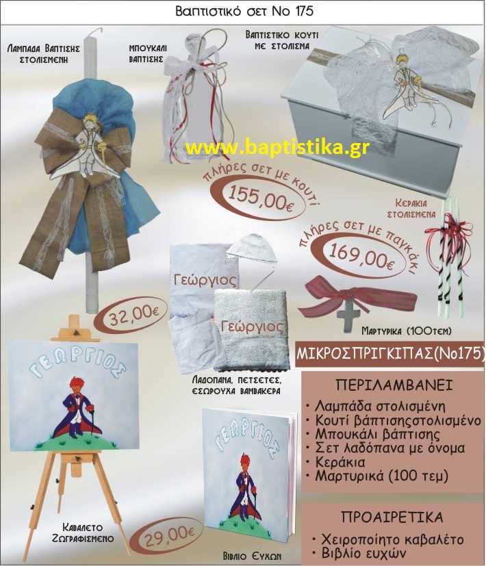 ΜΙΚΡΟΣ ΠΡΙΓΚΙΠΑΣ Νο175 βαπτιστικό σέτ πακέτο βάπτισης ΜΟΝΟ 155€ !!! σε οικονομικές και φθηνές τιμές ΚΑΙΣΑΡΙΑΝΗ Ζωγράφου ΙΛΙΣΙΑ