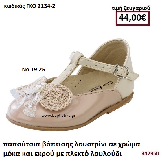 ΠΑΠΟΥΤΣΙΑ ΒΑΠΤΙΣΗΣ ΛΟΥΣΤΡΙΝΙ ΣΕ ΧΡΩΜΑ ΜΟΚΑ ΚΑΙ ΕΚΡΟΥ ΜΕ ΠΛΕΚΤΟ ΛΟΥΛΟΥΔΙ GORGINO ΔΕΡΜΑΤΙΝΑ-ΑΝΑΤΟΜΙΚΑ ΓΚΟ 2134-2