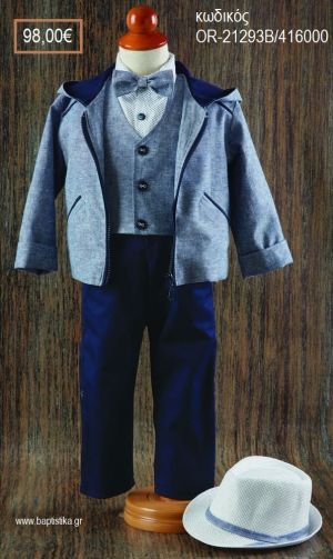 ΒΑΠΤΙΣΤΙΚΟ ΚΟΣΤΟΥΜΙ ΓΚΡΙ - ΜΠΛΕ ΜΕ ΞΥΛΙΝΟ ΠΑΠΙΓΙΟΝ ΣΑΡ-7895