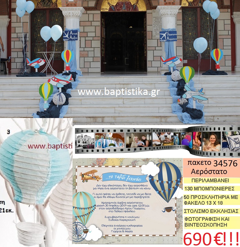 ΑΕΡΟΣΤΑΤΟ πακέτο βάπτισης (130 χάρτινες μπομπονιέρες,50 προσκλητήρια,στολισμός εκκλησίας,φωτογράφιση,βιντεοσκόπιση) Νο 34576