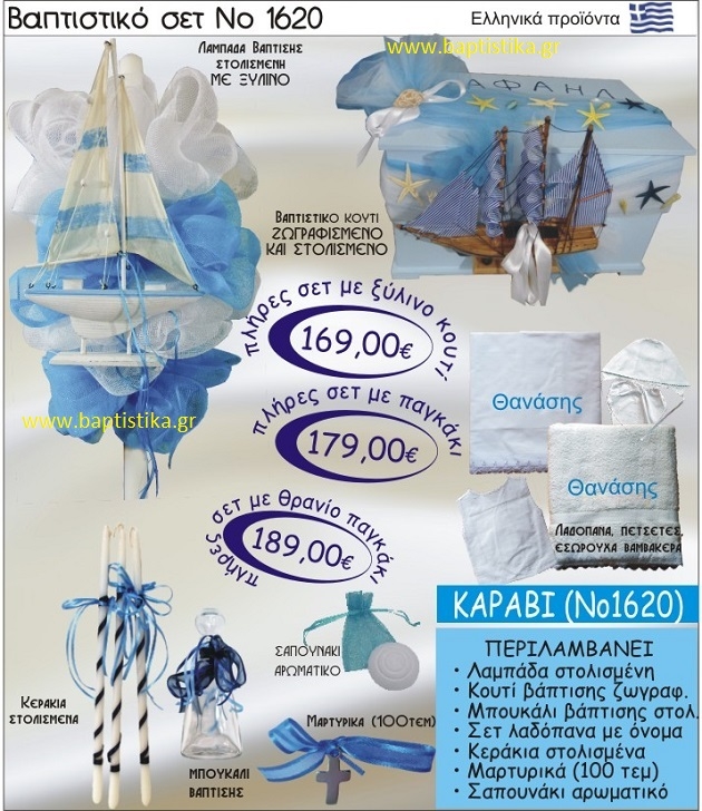 ΚΑΡΑΒΙ Βαπτιστικό σέτ-πακέτο σε ΚΟΥΤΙ ΞΥΛΙΝΟ ΝΟ-1620