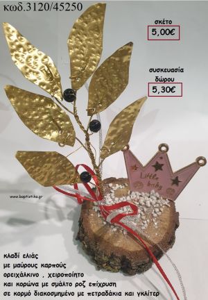 ΚΛΑΔΙ ΕΛΙΑΣ ΜΕ ΜΑΥΡΟΥΣ ΚΑΡΠΟΥΣ ΟΡΕΙΧΑΛΚΙΝΟ ΚΑΙ ΚΟΡΩΝΑ ΕΠΙΧΡΥΣΗ ΜΕ ΡΟΖ ΣΜΑΛΤΟ ΣΕ ΚΟΡΜΟ για γούρι - δώρο ΤΖΑ-3120/45250 5.30€!!!