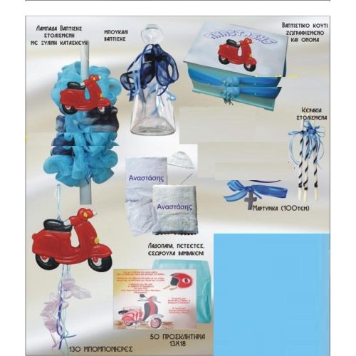 πακέτα 130 μπομπονιέρες / 50 προσκλητήρια / στολισμός / φωτογράφιση βιντεοσκόπηση για αγόρι