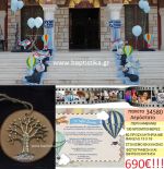 ΑΕΡΟΣΤΑΤΟ πακέτο βάπτισης (130 σε κορμό ξύλου μπομπονιέρες,50 προσκλητήρια,στολισμός εκκλησίας,φωτογράφιση,βιντεοσκόπιση) Νο 34580
