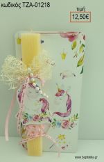 Η τιμή περιλαμβάνει ΦΠΑ και αφορά την λαμπάδα και ξύλινη πλάτη σε συσκευασία δώρου.