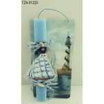 ΚΑΡΑΒΙ ΞΥΛΙΝΟ ΛΑΜΠΑΔΑ ΠΑΣΧΑΛΙΝΗ ΣΕ ΞΥΛΙΝΗ ΠΛΑΤΗ