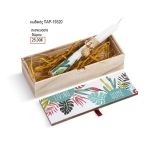 λαμπάδα ζωγραφιστή με κάκτους και στολισμένη με μεταλλικό χρυσό μοτίφ ανανά και κασετίνα κουτάκι με print jungle στοιχεία.