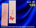 ", "category" : "ΠΕΤΑΛΟΥΔΕΣ μπομπονιέρες βάπτισης,στολισμοί εκκλησίας,βαπτιστικά πακέτα,δώρα πάρτι, μαιευτηρίου", "sku": "7365", "offers": { "@type": "Offer", "priceCurrency": "EUR", "price": "1.08", "priceValidUntil": "2026-04-09", "url" : "https://www.vip-mpomponiera.gr/portal/proionta/prosklisi/fantastika-prosklitiria-vaftisis/prosklitirio-vaftisis-petaloudes-kod-360-detail", "itemCondition": "http://schema.org/NewCondition", "availability": "http://schema.org/InStock" } }