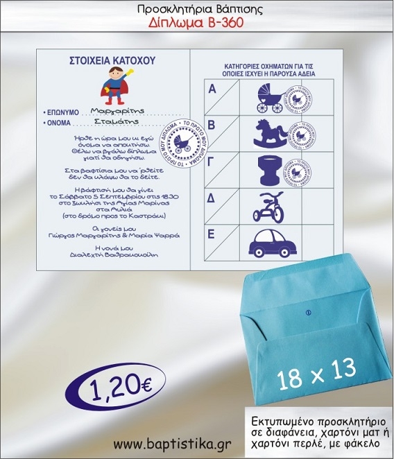 ΔΙΠΛΩΜΑ προσκλητήριο βάπτισης με φακελο 13χ18 Β-360