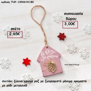 ΣΠΙΤΑΚΙ ΞΥΛΙΝΟ ΧΡΩΜΑ ΡΟΖ ΜΕ ΖΩΓΡΑΦΙΣΤΟ ΜΗΝΥΜΑ ΚΑΙ ΡΟΔΙ ΕΠΑΡΓΥΡΟ ΜΕΤΑΛΛΙΚΟ για γούρι - δώρο ΠΑΡ-13946/41180 3.00€!!!