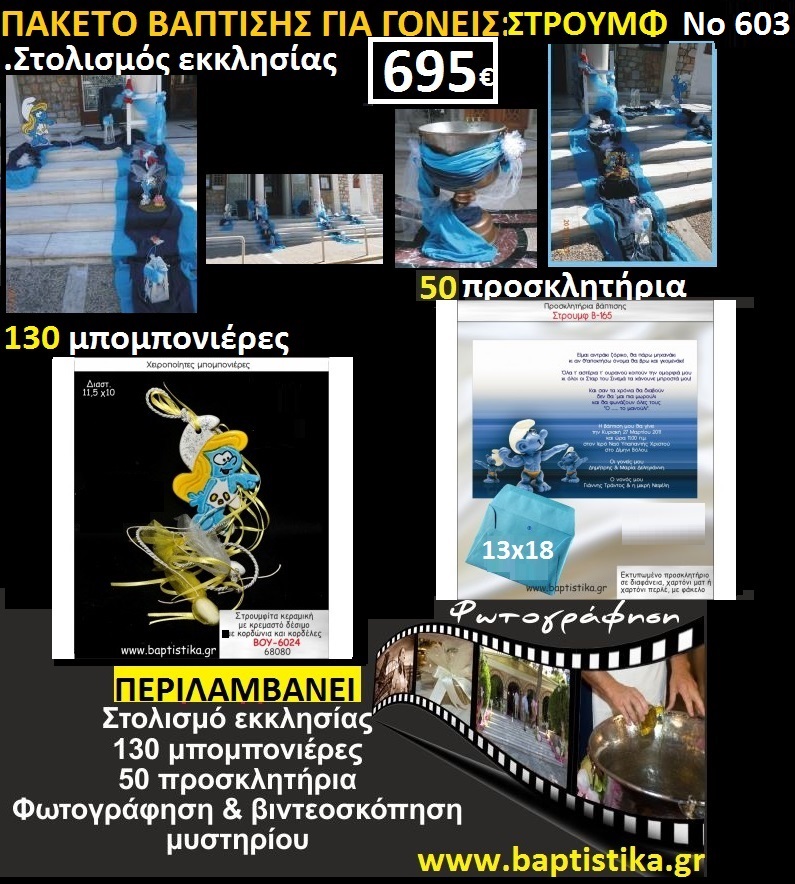ΣΤΡΟΥΜΦΙΤΑ ΠΑΚΕΤΟ ΒΑΠΤΙΣΗΣ(130 ΜΠΟΜΠΟΝΙΕΡΕΣ,50 ΠΡΟΣΚΛΗΤΗΡΙΑ,ΣΤΟΛΙΣΜΟΣ ΕΚΚΛΗΣΙΑΣ,ΦΩΤΟΓΡΑΦηΣΗ & ΒΙΝΤΕΟΣΚΟΠΗΣΗ)