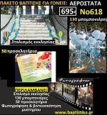ΑΕΡΟΣΤΑΤΟ Νο618 ΠΑΚΕΤΟ ΒΑΠΤΙΣΗΣ(130 ΜΠΟΜΠΟΝΙΕΡΕΣ,50 ΠΡΟΣΚΛΗΤΗΡΙΑ,ΣΤΟΛΙΣΜΟΣ ΕΚΚΛΗΣΙΑΣ,ΦΩΤΟΓΡΑΦηΣΗ & ΒΙΝΤΕΟΣΚΟΠΗΣΗ) 695,00€