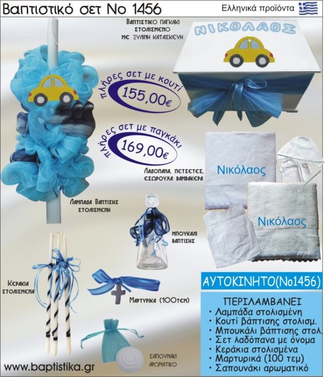 ", "category" : "ΑΥΤΟΚΙΝΗΤΑ OXHMATA & ΜΕΤΑΦΟΡΙΚΑ ΜΕΣΑ μπομπονιέρες βάπτισης,στολισμοί εκκλησίας,βαπτιστικά πακέτα,δώρα πάρτι, μαιευτηρίου", "sku": "9001", "offers": { "@type": "Offer", "priceCurrency": "EUR", "price": "155", "priceValidUntil": "2025-12-22", "url" : "https://www.vip-mpomponiera.gr/portal/proionta/thema-agori/aftokinita-oxhmata-metaforika-mesa-bomponieres-vaptisis-stolismoi-ekklisias-vaptistika-paketa-dora-parti-maieftiriou/aftokinito-no1456-vaptistiko-set-paketo-vaptisis-mono-155-detail", "itemCondition": "http://schema.org/NewCondition", "availability": "http://schema.org/InStock" } }