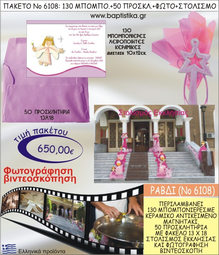 ΑΣΤΕΡΙ-ΡΑΒΔΙ 650€ ΠΑΚΕΤΟ ΒΑΠΤΙΣΗΣ (130 ΜΠΟΜΠΟΝΙΕΡΕΣ,50 ΠΡΟΣΚΛΗΤΗΡΙΑ,ΣΤΟΛΙΣΜΟΣ ΕΚΚΛΗΣΙΑΣ,ΦΩΤΟΓΡΑΦΗΣΗ-ΒΙΝΤΕΟΣΚΟΠΗΣΗ) ΝΟ6108
