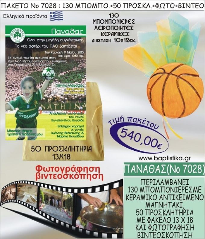 ΠΑΝΑΘΑΣ 540 € ΠΑΚΕΤO ΒΑΠΤΙΣΗΣ (130 μπομπονιέρες,50 προσκλητήρια φωτογράφηση & βιντεοσκόπηση) ΝΟ-7028