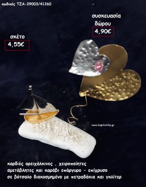 ΚΑΡΔΙΕΣ ΟΡΕΙΧΑΛΚΙΝΕΣ ΧΕΙΡΟΠΟΙΗΤΕΣ ΜΕ ΚΑΡΑΒΙ ΕΠΑΡΓΥΡΟ - ΕΠΙΧΡΥΣΟ ΣΕ ΒΟΤΣΑΛΟ για γούρι - δώρο ΠΑΡ-29003/41260 4.90€!!!