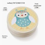 κουκουβάγια γαλάζια στρογγυλό ξύλινο κουτάκι με αυτοκολλητο παρ σο982