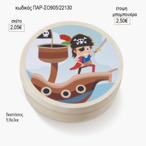 πειρατής στρογγυλό ξύλινο κουτάκι με αυτοκολλητο παρ σο905