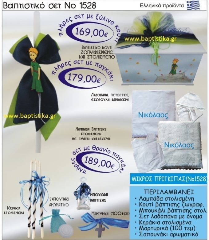 ", "category" : "βαπτιστικά σετ πακέτα βάπτισης για αγόρια", "sku": "9142", "offers": { "@type": "Offer", "priceCurrency": "EUR", "price": "179", "priceValidUntil": "2025-12-22", "url" : "https://www.vip-mpomponiera.gr/portal/proionta/thema-agori/prigkipes-mikroi-little-prince-bomponieres-vaptisis-stolismoi-ekklisias-vaptistika-paketa-dora-parti-maieftiriou/mikros-prigkipas-me-pagkaki-vaptistiko-set-paketo-no1528-detail", "itemCondition": "http://schema.org/NewCondition", "availability": "http://schema.org/InStock" } }Η ΤΙΜΗ ΠΕΡΙΛΑΜΒΑΝΕΙ ΦΠΑ,