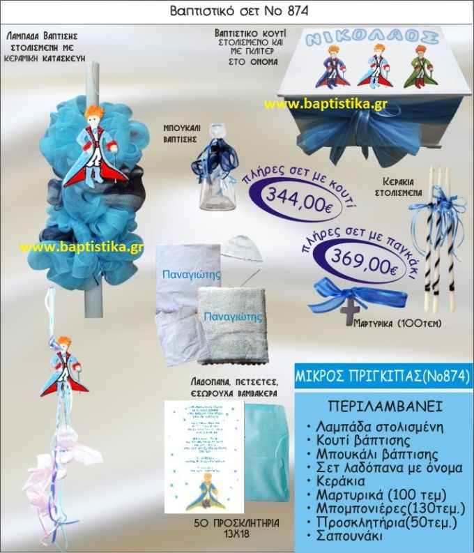 ", "category" : "ΠΡΙΓΚΙΠΕΣ ΜΙΚΡΟΙ Little-Prince μπομπονιέρες βάπτισης,στολισμοί εκκλησίας,βαπτιστικά πακέτα,δώρα πάρτι, μαιευτηρίου", "sku": "5448", "offers": { "@type": "Offer", "priceCurrency": "EUR", "price": "344", "priceValidUntil": "2025-12-21", "url" : "https://www.vip-mpomponiera.gr/portal/proionta/thema-agori/prigkipes-mikroi-little-prince-bomponieres-vaptisis-stolismoi-ekklisias-vaptistika-paketa-dora-parti-maieftiriou/mikros-prigkipas-set-no874-mono-344-paketo-vaptisis-vaptistiko-set-plires-130-bomponieres-50-prosklitiria-pagkrati-glyfada-ilisia-xalandri-xaidari-peiraias-marousi-detail", "itemCondition": "http://schema.org/NewCondition", "availability": "http://schema.org/InStock" } }