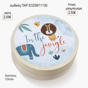 ζώα ζούγκλας στρογγυλό ξύλινο κουτάκι με αυτοκολλητο παρ σο239