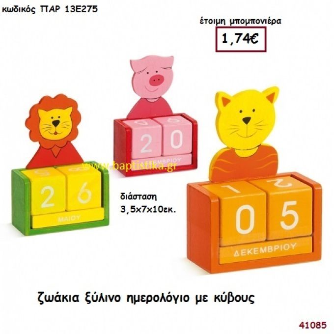 ΖΩΑΚΙΑ ΗΜΕΡΟΛΟΓΙΟ ΞΥΛΙΝΟ μπομπονιέρα Βάπτισης ΠΑΡ-13Ε275