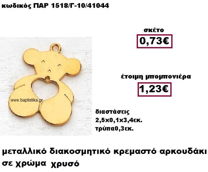 ΑΡΚΟΥΔΑΚΙ ΜΕΤΑΛΛΙΚΟ ΧΡΥΣΟ ΚΡΕΜΑΣΤΟ ΜΠΟΜΠΟΝΙΕΡΑ ΒΑΠΤΙΣΗΣ ΠΑΡ-1518/Γ-10