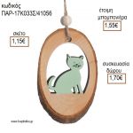 ΓΑΤΑ ΣΕ ΞΥΛΙΝΟ ΚΡΕΜΑΣΤΟ ΚΟΡΜΟ για μπομπονιέρες - δώρα πάρτυ - εορτών - γέννησης - γούρια - φτιάξτο μόνος σου ΠΑΡ-17Κ033Σ/41056 1.15€!!!