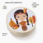 ινδιάνα στρογγυλό ξύλινο κουτάκι με αυτοκολλητο παρ σο940