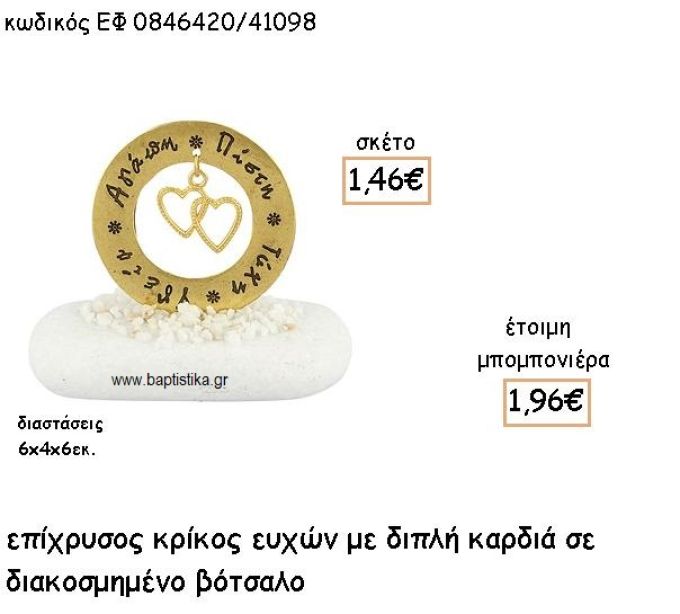 ΔΙΠΛΗ ΚΑΡΔΙΑ ΚΡΕΜΑΣΤΗ ΣΕ ΚΡΙΚΟ ΕΥΧΩΝ ΕΠΙΧΡΥΣΟ ΣΕ ΒΟΤΣΑΛΟ ΓΙΑ ΜΠΟΜΠΟΝΙΕΡΕΣ ΓΑΜΟΥ ΕΦ 0846420/41098
