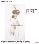 ΚΑΡΔΙΕΣ ΚΡΕΜΑΣΤΕΣ ΔΙΠΛΕΣ ΜΕ ΒΕΡΕΣ μπομπονιέρα Γάμου ΖΑΦ-1411