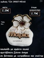ΛΟΥΛΟΥΔΙ ΜΕ ΛΕΥΚΟ ΣΜΑΛΤΟ ΚΑΙ ΞΥΛΙΝΟ ΟΝΟΜΑ ΣΕ ΒΟΤΣΑΛΟ ΓΙΑ ΜΠΟΜΠΟΝΙΕΡΕΣ ΒΑΠΤΙΣΗΣ ΤΖΑ-39007/45160
