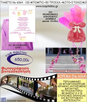 ΦΟΡΕΜΑ 650€ ΠΑΚΕΤΟ ΒΑΠΤΙΣΗΣ (130 ΜΠΟΜΠΟΝΙΕΡΕΣ,50 ΠΡΟΣΚΛΗΤΗΡΙΑ,ΣΤΟΛΙΣΜΟΣ ΕΚΚΛΗΣΙΑΣ,ΦΩΤΟΓΡΑΦΗΣΗ-ΒΙΝΤΕΟΣΚΟΠΗΣΗ) ΝΟ6064