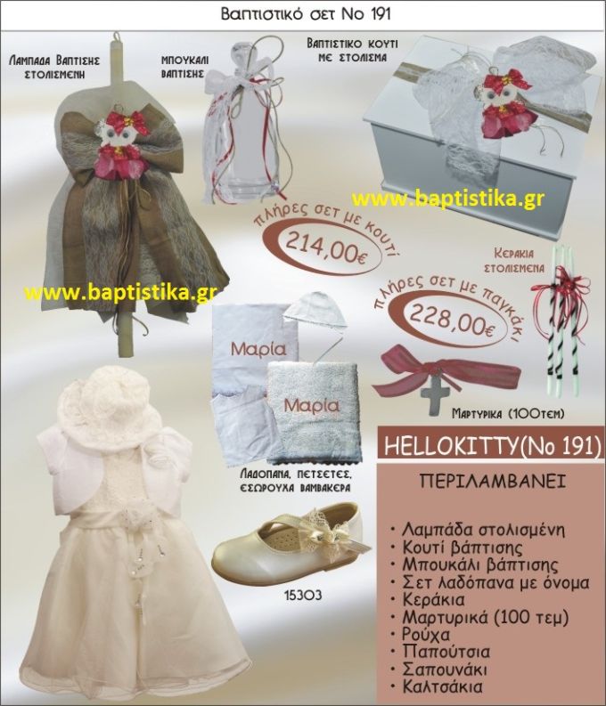 ΗELLΟ ΚΙΤΤΥ Νο191 βαπτιστικό σέτ πακέτο βάπτισης ΜΟΝΟ 214€ !!! σε οικονομικές και φθηνές τιμές ΚΑΙΣΑΡΙΑΝΗ Ζωγράφου ΙΛΙΣΙΑ